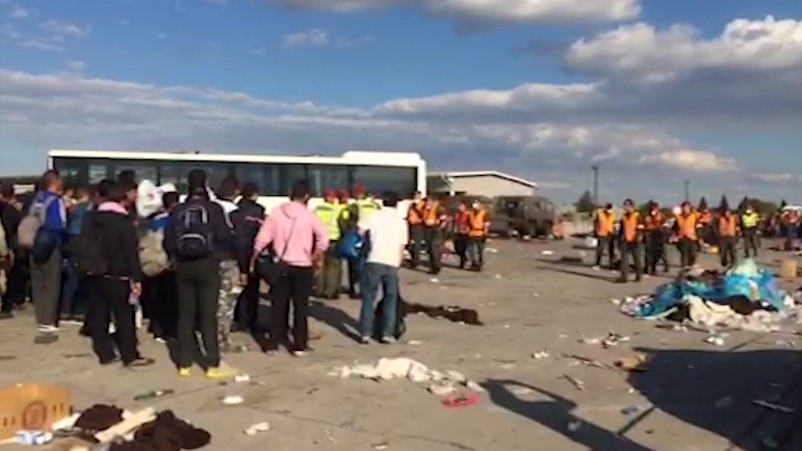 Když ta chvíle nastala zaplňuje se najednou maďarská strana hranice nezvladatelným počtem lidí. Migranti obléhají stánek Červeného kříže a dožadují se vody. Po cestě jsou vyčerpaní a chtějí se už dostat do tábora.