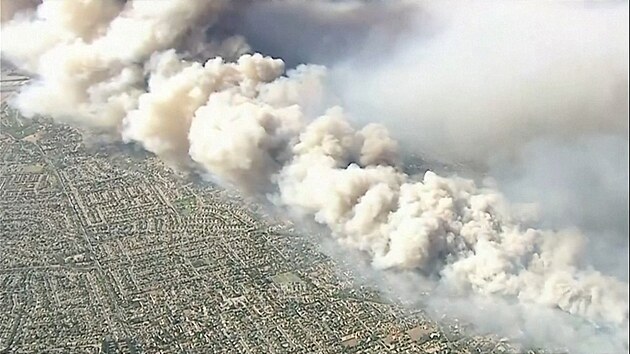 Hustý dým stoupal stovky metrů k obloze, zahaloval celé čtvrti a omezoval viditelnost hasičům.