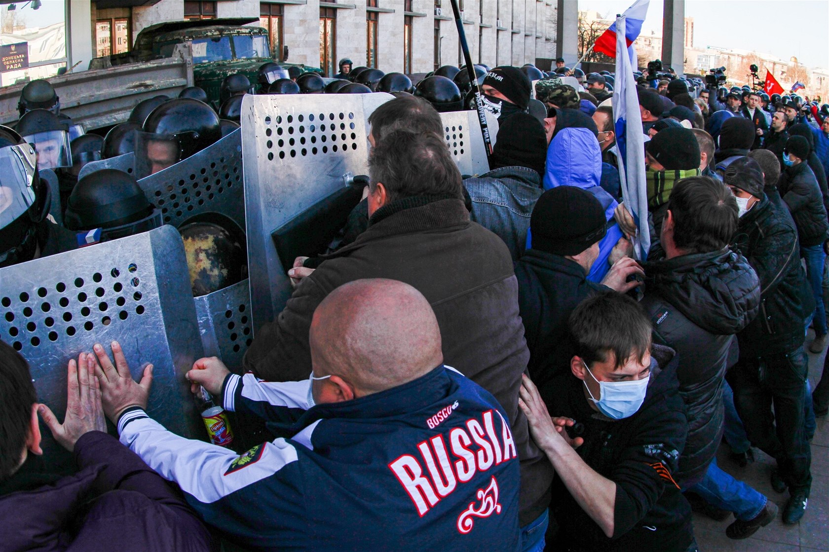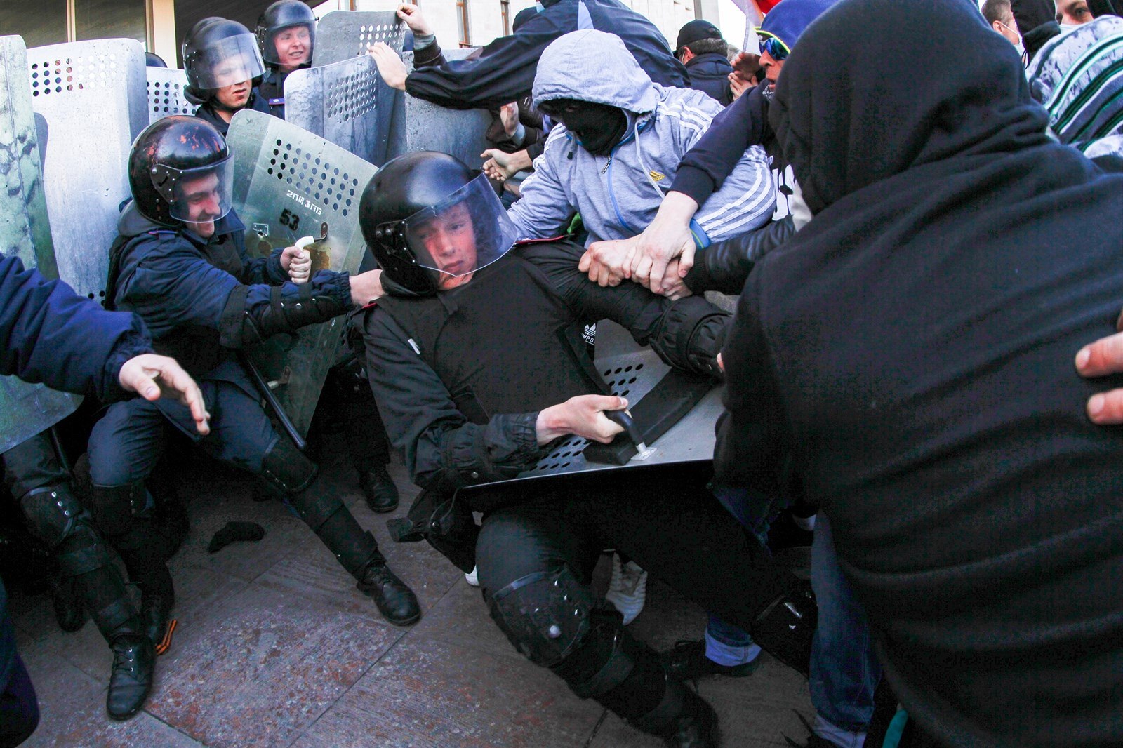 Střety mezi těžkooděnci a proruskými demonstranty v Doněcku (6. dubna 2014)