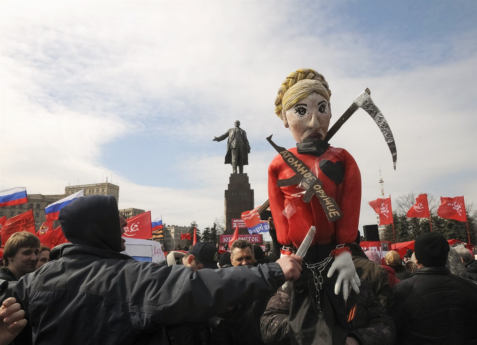 Proruská demonstrace v Charkově (7. dubna 2014)