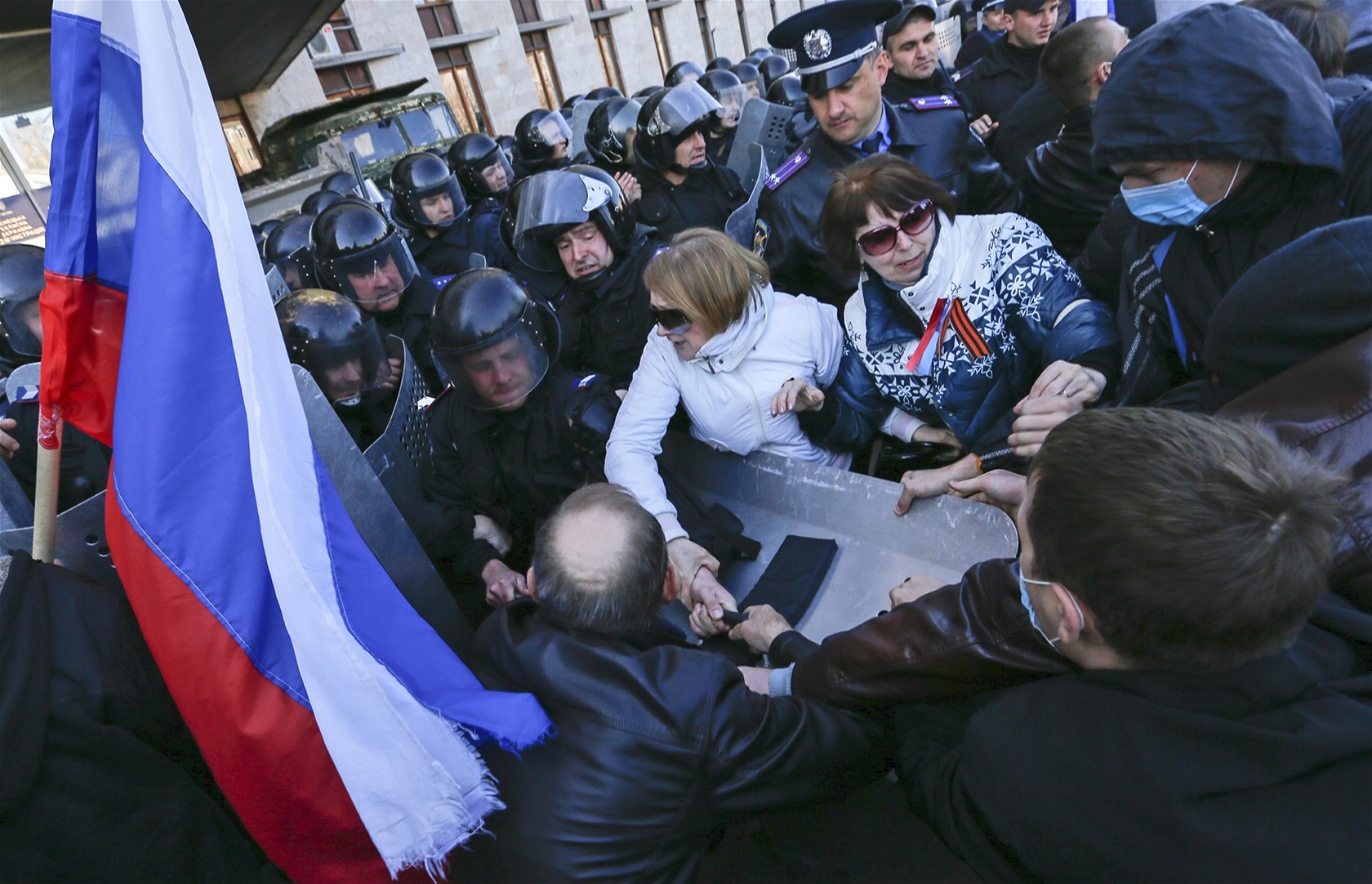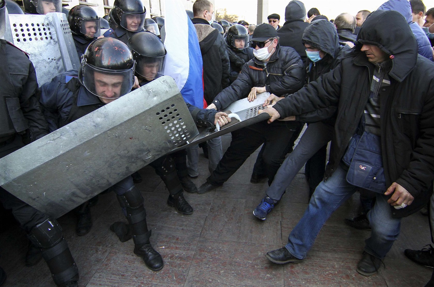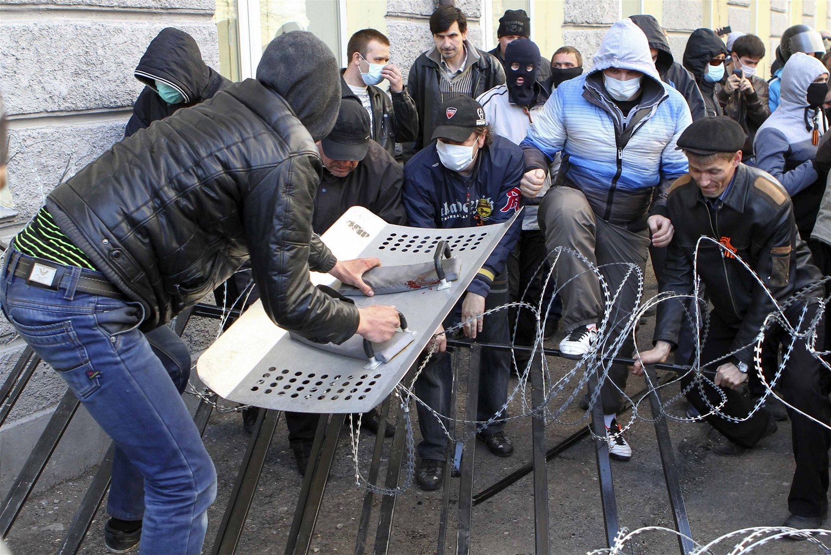 Dav demonstrantů v Doněcku násilím pronikl do sídla gubernátora (6. dubna)