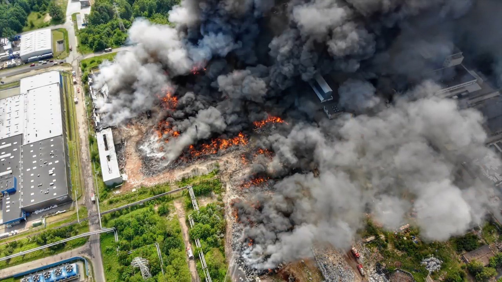 „Teplota uvnitř požáru je tak vysoká, že hořící odpadky vytvořily gigantický toxický mrak, který se sune na jihovýchod,“ líčil místní guvernér Zbigniew Rau požár skládky, na které bylo padesát tisíc tun odpadu ze západní Evropy.