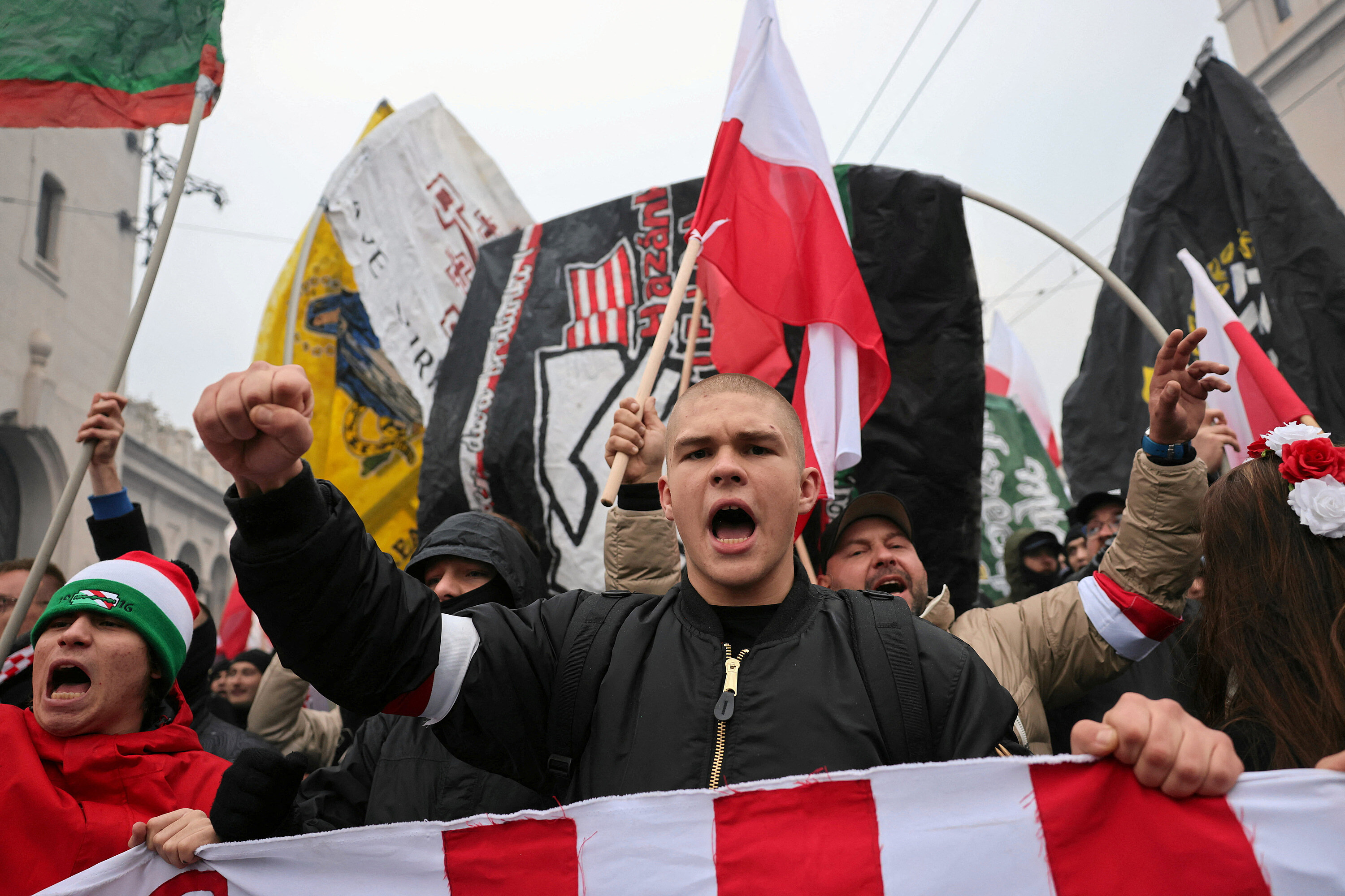 Při pondělním pochodu tisíce lidí nesly červenobílé polské vlajky, zatímco někteří skandovali „Bílá Evropa bratrských národů!“ nebo „Stop Evropské unii!“, další nesli transparenty s nápisy „Stop masové migraci“ nebo „Přestaňte měnit Polsko v Ukrajinu“ nebo „Bílá země, bílí lidé“.