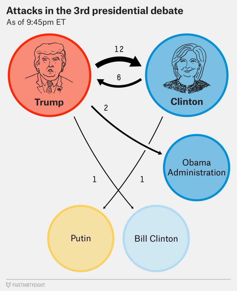 Čtvrteční klání bylo vyvrcholením čtveřice televizních debat. Ve dvou už se utkali Trump s Clintonovou, v jedné dostali prostor kandidáti na viceprezidenta Tim Kaine a Mike Pence. V obou dosavadních hlavních kláních se debata vždy stočila k osobním útokům. Trump například hrozil Clintonové vězením (více zde). Viceprezidentská debata byla výrazně klidnější. Vítězem debaty byl u diváků republikán Pence (více zde).