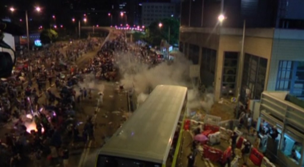 Policie v neděli v metropoli bývalé britské kolonie zablokovala přístup k areálu vlády, kde se od pátku tisíce lidí dožadují zachování širokých občanských svobod a demokratických změn. Demonstranti na mnoha místech stavěli barikády a zásahovým jednotkám vzdorovali (více o nedělních protestech zde). V pondělí dál blokují nejen vládní, ale i finanční čtvrť a některé důležité dopravní tepny a ignorují výzvy úřadů, podle nichž jsou nepovolené demonstrace nezákonné.