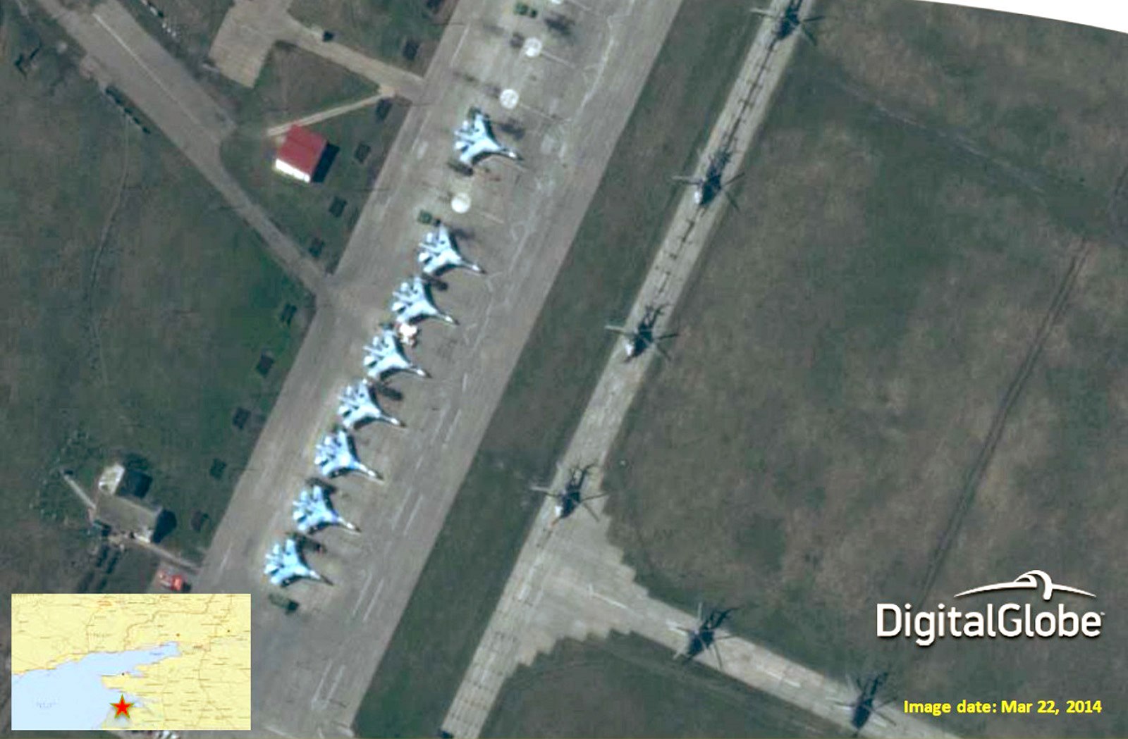 Snímky společností DigitalGlobe byly pořízeny v období mezi 22. a 27. březnem, tedy už poté, co se Rusové zmocnili Krymu a jeho anexi posvětili. Novinářům je předal vrchní velitel amerických a aliančních sil NATO v Evropě Philip Breedlove. Agentura AP zdůrazňuje, že za pravost snímků nemůže ručit.