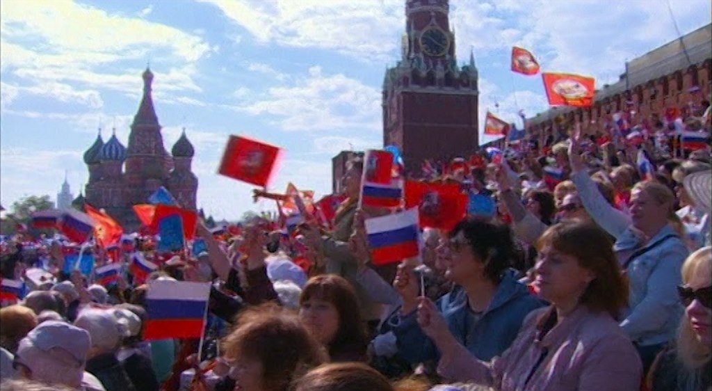 Na Rudé náměstí se však dostanou jen provládní odboráři. Opoziční komunisté svátek slaví u pomníku Karla Marxe, a to s hesly typu "Továrny pracujícím", "Moc práci a ne kapitálu" či "Nejlepší dovolená je na Krymu".