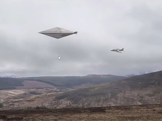 Nad kamenitou krajinou spatřili podivný vznášející se stroj ve tvaru diamantu. Podle všeho neměl žádné motory a nezanechával emise. Visel na obloze, jako by zamrzl v čase. Vyděšení muži padli na zem, pak se odplazili do úkrytu za strom a pořídili sérii fotografií. Viděli, jak kolem objektu obkroužila stíhačka Harrier, pak levitující stroj údajně odletěl svisle vzhůru a zmizel, píše The Guardian.