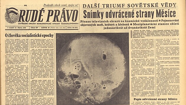 „Každý z těch úspěchů, kterých nyní bylo dosaženo, je bezpříkladným vědeckým hrdinným činem. A to, že jej vykonali sovětští lidé, je jev hluboce zákonitý. Znamená nespornou převahu sovětského socialistického zřízení a jasně dokazuje celému světu, co dokáže tvůrčí budovatelská práce lidu osvobozeného z okovů kapitalistického útlaku,“ meditoval nad zrnitou fotkou komentátor Rudého Práva Karel Sršeň.