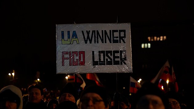 V Bratislavě mnoho lidí přišlo s evropskými, slovenskými nebo ukrajinskými vlajkami a s transparenty s hesly jako „Dost bylo Fica“ nebo „Úřad na šikanu oznamovatelů“.