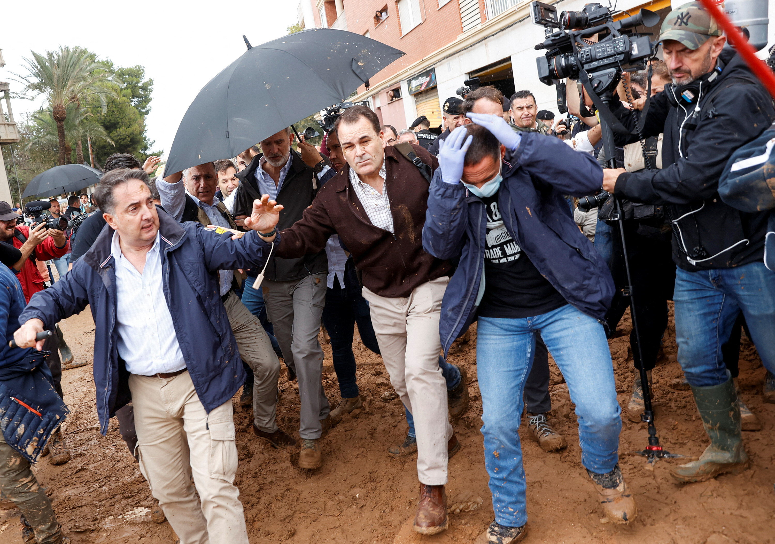 Rozčílený dav ze zaplavených oblastí ve Španělsku házel bláto na krále![]() |
