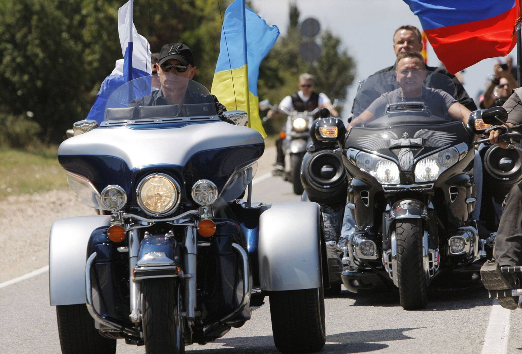 Ruský premiér Vladimir Putin v tmavých brýlích, celý v černém a v bezprstových kožených rukavicích na tříkolce Harley Davidson. Takový obrázek se naskytl účastníkům mezinárodního srazu motorek, který se o víkendu konal poblíž ukrajinského Sevastopolu na Krymu.