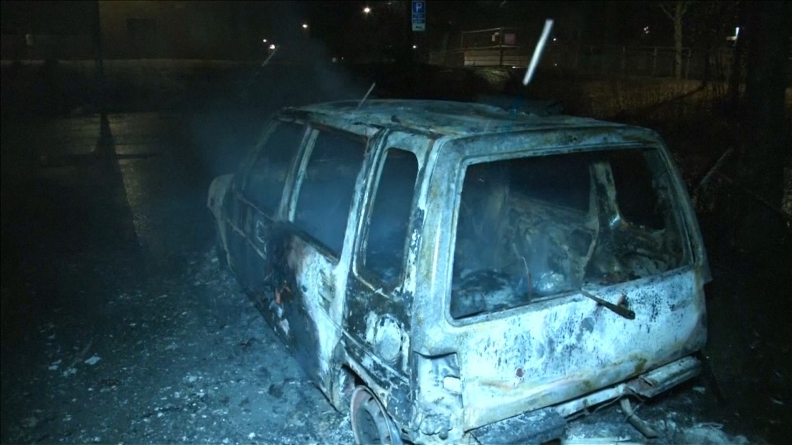 Po jejím odjezdu se začal srocovat dav, který zapálil deset automobilů a poničil několik výloh obchodů. Strážníci se na místo vrátili. Agresoři na ně házeli kameny, jednomu z policistů zranili ruku. Strážci zákona agresivní dav nejprve varovali výstřely do vzduchu, jeden z policistů pak vypálil přímo na jednoho protestujícího, ale minul, uvádí server The Washington Post.