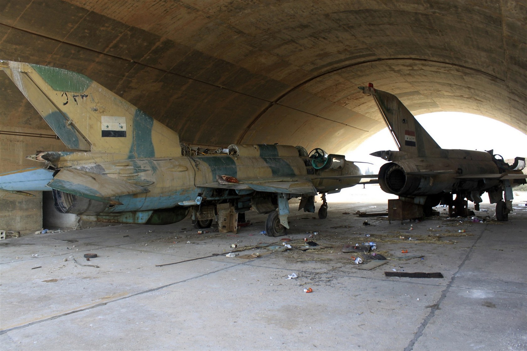 Asadovy stíhačky v hangáru nedaleko města Kusajr (2. června 2013)