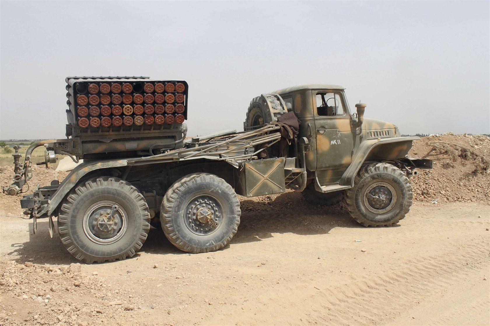 Raketomet Asadových jednotek ve městě Kusajr (2. června 2013)