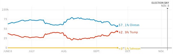 Model tedy má stále za pravděpodobnější, že by Hillary Clintonová v tuto chvíli volby vyhrála - ale je to méně jisté než než začátkem srpna. Tehdy bylo krátce po konventu demokratů a po sérii kritizovaných Trumpových výroků, které rezonovaly americkými médii. Průzkumy tehdy byly pro Clintonovou mnohem příznivější a model FiveThirtyEight.com udával její šanci na vítězství 90 %.