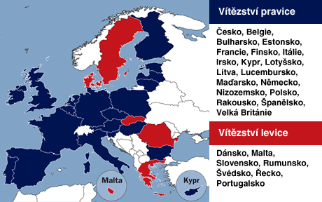 Podle předběžných výsledků obecně získaly evropské středopravé strany převahu na úkor levice.