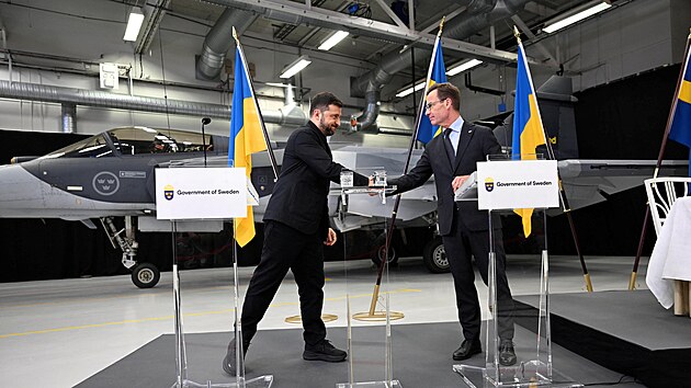 Kristersson na tiskové konferenci v Linköpingu potvrdil, že Švédsko a Ukrajina podepsaly dohodu o dlouhodobé spolupráci v letecké obraně, která zahrnuje i možnost prodeje až 150 nově vyrobených gripenů v nejmodernější verzi E. Zelenskyj se švédským premiérem ve středu společně navštívili továrnu firmy Saab, která gripeny vyrábí.