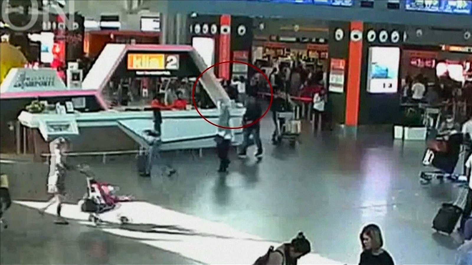 Na záznamu je vidět, jak Kim ve světlém obleku a s černým batohem na zádech prochází odletovou halou letiště v Kuala Lumpuru. Nejprve se zastaví a na tabuli zřejmě kontroluje číslo přepážky, na které by se měl odbavit.