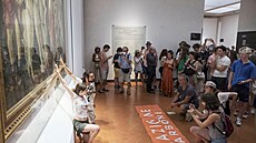 VIDEO: Aktivisté se ve Florencii přilepili na slavný obraz, zachránilo ho sklo |
